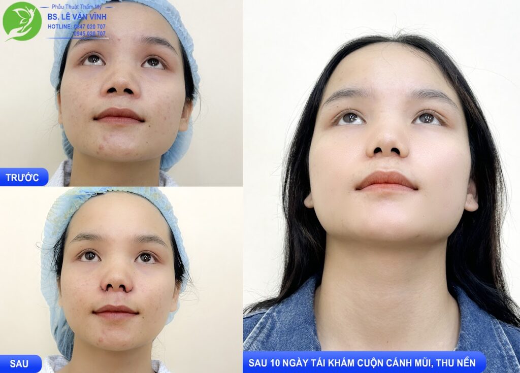 Thế nào là ca cuộn cánh mũi thành công? Để có được sự nhìn nhận và đánh giá thực tế hơn về việc Cuộn cánh mũi có để lại sẹo không, bạn có thể xem một số hình ảnh sau đây để thấy rõ kết quả của những ca thực tế do BS Lê Văn Vĩnh thực hiện.